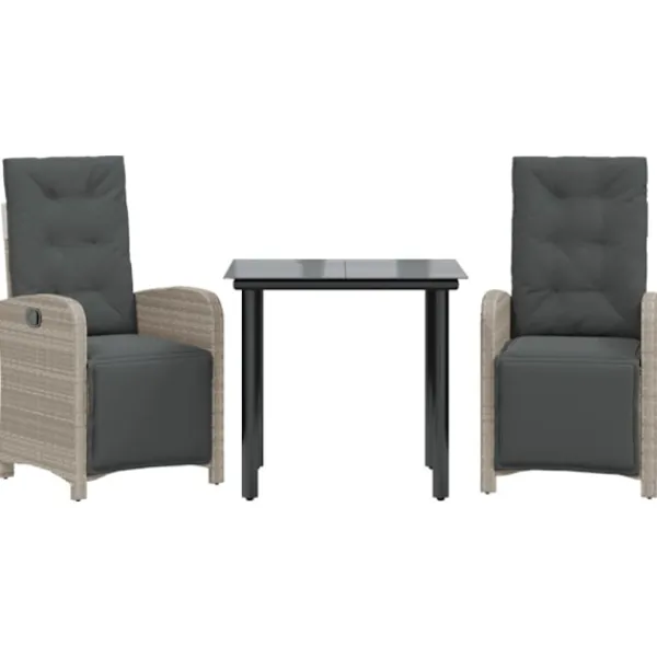 vidaXL Balkongmöbler>Bistrogrupp med dynor 3 delar ljusgrå konstrotting