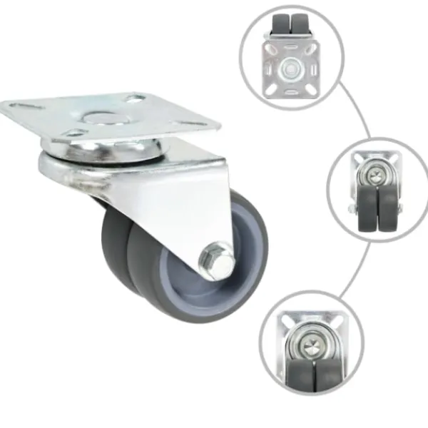 Den här uppsättningen om 4 dubbelhjul blir ett bra tillbehör för mindre utrustning och möbler såsom arbetsbänkar, vagnar, soffbord, växtställ, bokhyllor, kundvagnar med mera.