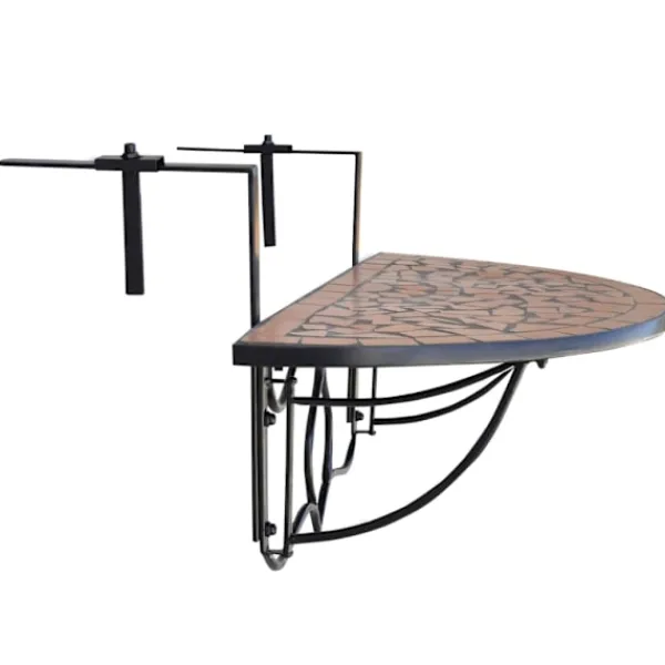Detta är ett smidigt hängbord som är både snyggt och praktiskt med sin halvcirkel formade konstruktion. Den kommer att bli ett snyggt komplement till er balkong, samtidigt som det erbjuder möjligheten att ta en mysig fika på balkongen. Bordet har en stark och pålitlig järnram med en bordsskiva i keramik som är väderbeständig, samt lätt att rengöra. Detta balkongbord är lämpligt att hänga upp på en list upp till 18 cm bred. Det är både enkelt och smidigt att montera eller demontera när det inte används.