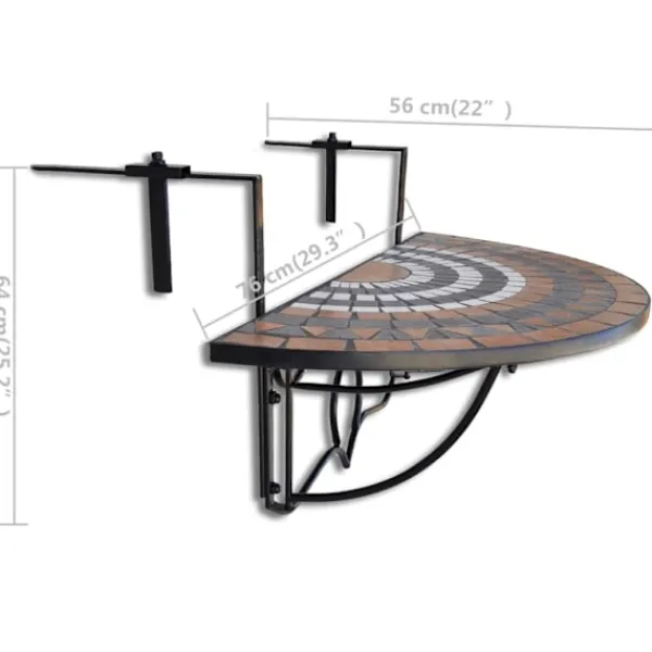 Detta hängbord är lämpligt att hänga upp på en list upp till 18 cm bred. Den kommer att bli ett snyggt komplement till er balkong, samtidigt som det erbjuder möjligheten att ta en mysig fika på balkongen. Bordet har en stark och pålitlig järnram med en bordsskiva i keramik som är väderbeständig, samt lätt att rengöra. Detta balkongbord är både snyggt och praktiskt med sin halvrunda design och konstruktion. Det är både enkelt och smidigt att montera eller demontera när det inte används.