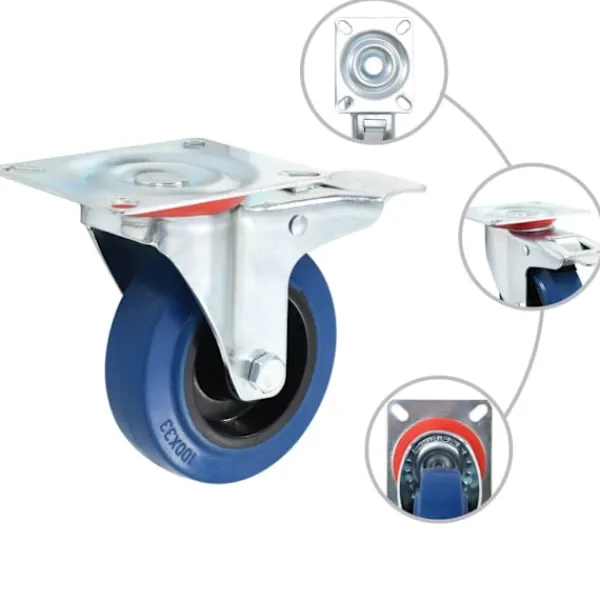 Den här uppsättningen om 32 hjul blir ett bra tillbehör för mindre utrustning och möbler såsom arbetsbänkar, vagnar, soffbord, växtställ, bokhyllor, kundvagnar med mera. Länkhjulen är tillverkade i gummi som kännetecknas av sitt goda stötdämpande vibrationsmotstånd, som gör dem smidiga och tysta. Dessutom skyddar hjulens mjuka yta ditt golv från repor. Ramen i zinkbelagt järn är högst rostbeständig och bidrar därmed till hjulens stadighet. Hälften av dessa hjul är utrustade med bromsar för flexibel kontroll. Varje länkhjul har en maximal lastkapacitet på 80 kg. Vid leverans ingår 16 fasta länkhjul och 16 länkhjul med bromsar.