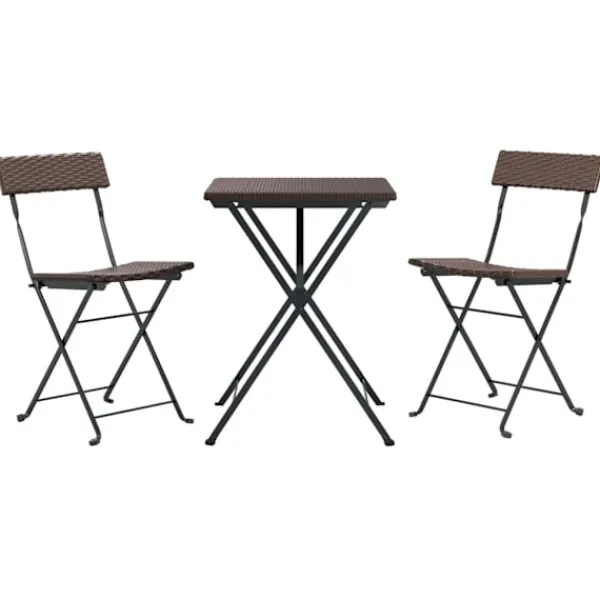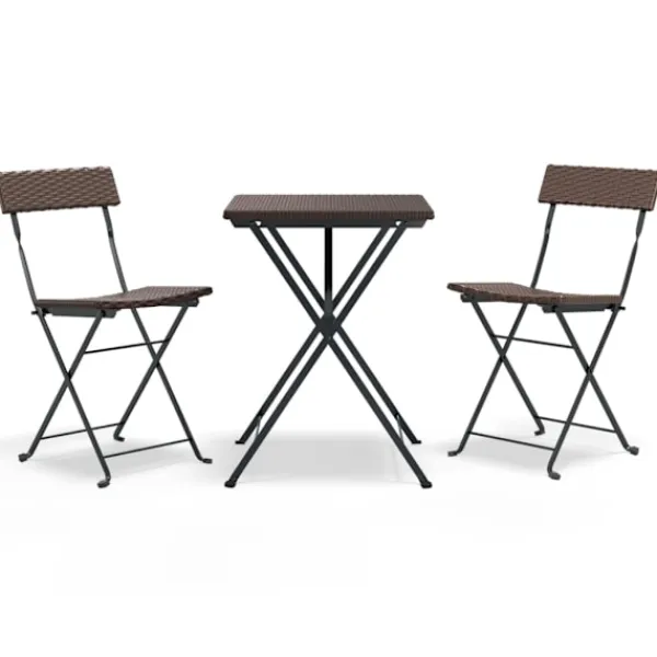 Detta hopfällbara caféset i 3 delar är gjort av konstrotting och är perfekt för middagar eller avkoppling i trädgården, på balkongen eller på uteplatsen. Väderbeständigt material: PE-rotting, även kallat konstrotting, är väderbeständigt och lätt att rengöra. Det håller sig vackert utomhus under en lång tid. Det är mer ekonomiskt än andra material, samtidigt som det erbjuder bra kvalitet, bekvämlighet och ett estetiskt utseende.Robust ram: De pulverlackerade stålramarna säkerställer robusthet och stabilitet.Hopfällbar design: Det hopfällbara bordet kan enkelt fällas ihop när det inte används för enkel förvaring och transport. Observera:För att förlänga livslängden på dina utemöbler rekommenderar vi att du skyddar den med ett vattentätt överdrag.Varje produkt levereras med en monteringsmanual i lådan för enkel montering.