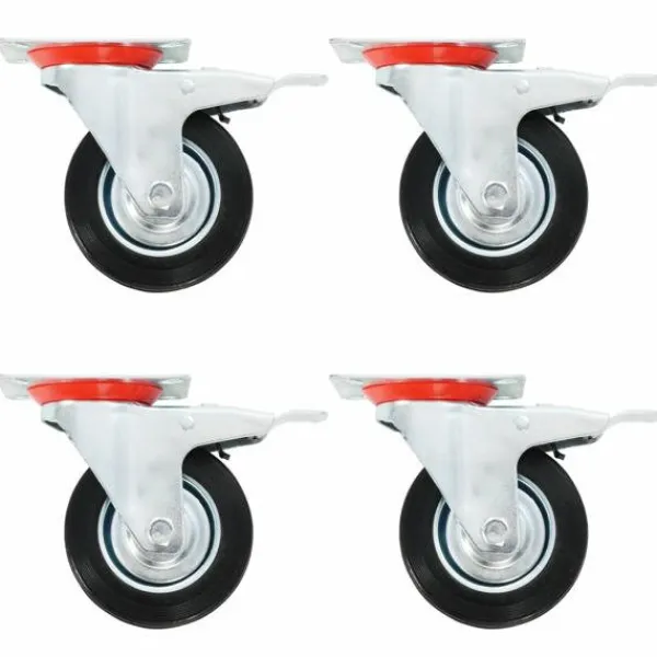 Den här uppsättningen om 12 länkhjul, hälften med bromsar blir ett bra tillbehör för mindre utrustning och möbler såsom arbetsbänkar, vagnar, soffbord, växtställ, bokhyllor, kundvagnar med mera. Länkhjulen är tillverkade i gummi som kännetecknas av sitt goda stötdämpande vibrationsmotstånd, som gör dem smidiga och tysta. Dessutom skyddar hjulens mjuka yta ditt golv från repor. Ramen i zinkbelagt järn är högst rostbeständig och bidrar därmed till hjulens stadighet. Hjulen är utrustade med bromsar för flexibel kontroll. Varje länkhjul har en maximal lastkapacitet på 70 kg. Vid leverans ingår 12 länkhjul, hälften med bromsar.