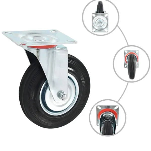 Den här uppsättningen om 16 länkhjul blir ett bra tillbehör för mindre utrustning och möbler såsom arbetsbänkar, vagnar, soffbord, växtställ, bokhyllor, kundvagnar med mera. Hjulen är tillverkade i gummi som kännetecknas av sitt goda stötdämpande vibrationsmotstånd, som gör dem smidiga och tysta. Dessutom skyddar hjulens mjuka yta ditt golv från repor. Ramen i zinkbelagt järn är högst rostbeständig och bidrar därmed till hjulens stadighet. Varje hjul har en maximal lastkapacitet på 100 kg. Vid leverans ingår 16 länkhjul.