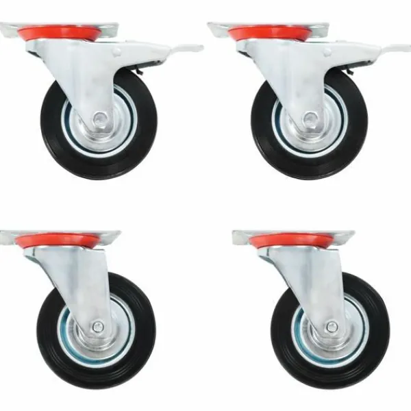 Den här uppsättningen om 24 länkhjul blir ett bra tillbehör för mindre utrustning och möbler såsom arbetsbänkar, vagnar, soffbord, växtställ, bokhyllor, kundvagnar med mera. Länkhjulen är tillverkade i gummi som kännetecknas av sitt goda stötdämpande vibrationsmotstånd, som gör dem smidiga och tysta. Dessutom skyddar hjulens mjuka yta ditt golv från repor. Ramen i zinkbelagt järn är högst rostbeständig och bidrar därmed till hjulens stadighet. Hälften av dessa hjul är utrustade med bromsar för flexibel kontroll. Varje länkhjul har en maximal lastkapacitet på 70 kg. Vid leverans ingår 12 länkhjul och 12 länkhjul med bromsar.