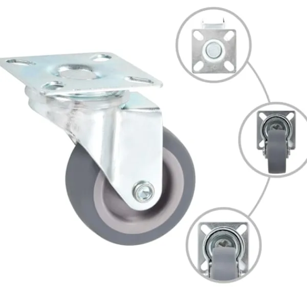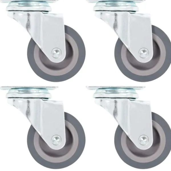 Den här uppsättningen om 4 länkhjul blir ett bra tillbehör för mindre utrustning och möbler såsom arbetsbänkar, vagnar, soffbord, växtställ, bokhyllor, kundvagnar med mera. Länkhjulen är tillverkade i TPR (termoplastisk gummi) som kännetecknas av sitt goda stötdämpande vibrationsmotstånd, som gör dem smidiga och tysta. Dessutom skyddar hjulens mjuka yta ditt golv från repor. Ramen i zinkbelagt järn är högst rostbeständig och bidrar därmed till hjulens stadighet. Varje länkhjul har en maximal lastkapacitet på 35 kg. Vid leverans ingår 4 länkhjul.