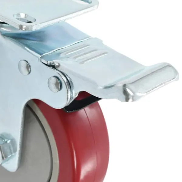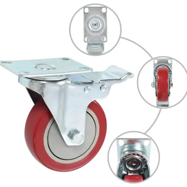 Den här uppsättningen om 4 länkhjul med dubbla bromsar blir ett bra tillbehör för mindre utrustning och möbler såsom arbetsbänkar, vagnar, soffbord, växtställ, bokhyllor, kundvagnar med mera. Länkhjulen är tillverkade i PP (polypropen) som kännetecknas av sitt goda stötdämpande vibrationsmotstånd, som gör dem smidiga och tysta. Dessutom skyddar hjulens mjuka yta ditt golv från repor. Dessutom är den zinkbelagda järnramen mycket rostbeständig och bidrar därmed till hjulets stabilitet och hållbarhet. Dessa svängbara hjul är utrustade med dubbla bromsar för flexibel kontroll. Varje hjul har en maximal lastkapacitet på upp till 80 kg. Vid leverans ingår 4 länkhjul med dubbla bromsar.