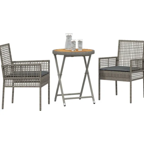 - Ingående komponenter: Varje del är noga utformad för att förbättra din upplevelse utomhus. Bordet är gjort av massivt akaciaträ som är hållbart och har en vacker brun nyans som passar alla trädgårdar. Avtagbara kuddar ger extra komfort och fästs med dragkedjor för enkel rengöring. De platta armstöden i Poly Rattan gör sittandet avslappnat, perfekt för lata morgnar eller samlingar med vänner.