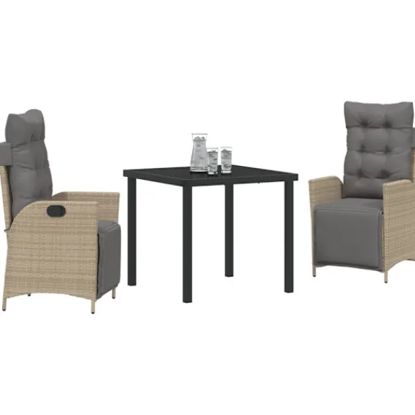 - Poly rattan och stålbyggnad Utemöbelsetet är gjort av poly rattan och pulverlackerat stål som gör att det står emot väder och är snyggt. Poly rattan ger både stil och stabilitet.