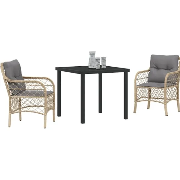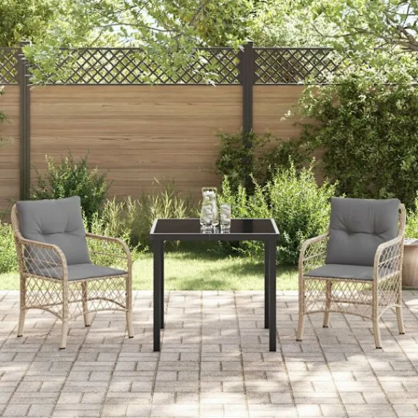 - Modern konstruktion: Snyggt designad med pulverlackerat stål och poly rattan för att ge en stadig och fin struktur. Denna kombination av material gör att setet står emot väder och vind, vilket lovar lång livslängd och en fräsch look för dina utomhussammankomster.