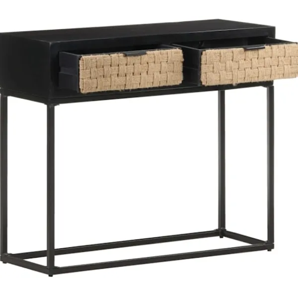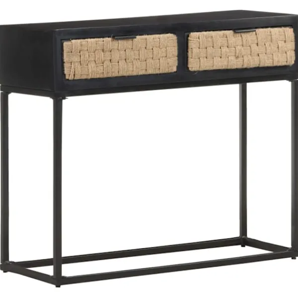 Avlastningsbordet i trä utstrålar en industriell stil och passar bra till hemmet. Hallbordet är handgjort i massivt mangoträ, ett tropiskt lövträ som har styrkan att bära vikten. Det är även mycket tåligt, vilket gör det stabilt och hållbart. Lådan är tillverkad i naturlig jute och järnbasen gör det stabilt. De 2 lådorna har även gott om utrymme för att hålla saker inom räckhåll. OBS: Färger och ådringar varierar från möbel till möbel, vilket gör varje produkt unik. Leveransen är slumpartad.