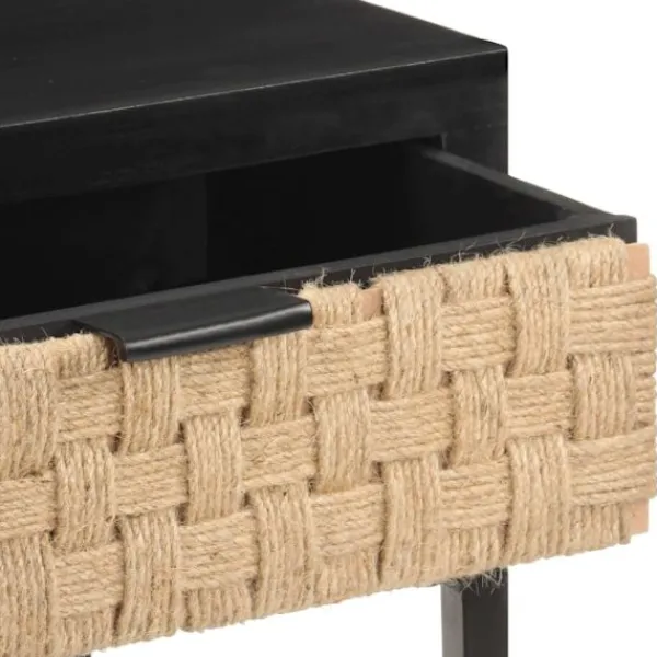 - Material: Massivt mangoträ med svart yta, järn med svart pulverlackering, jute