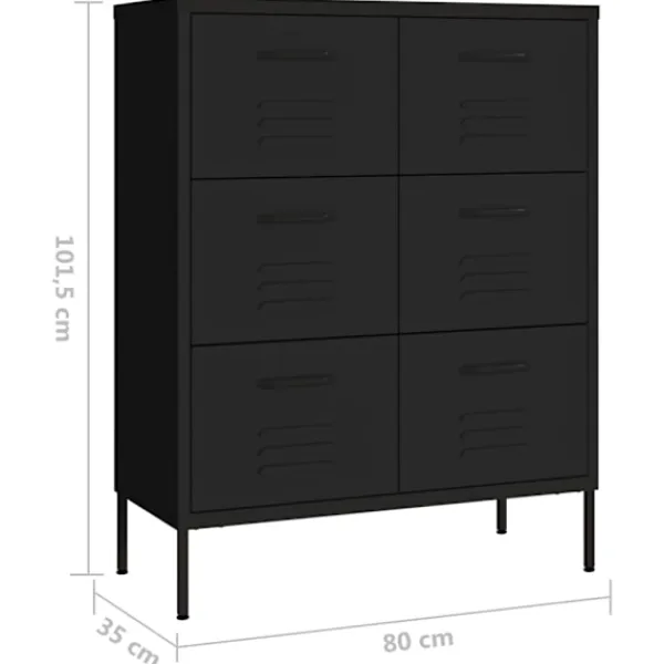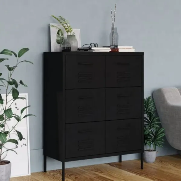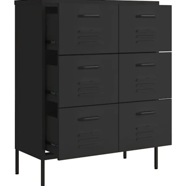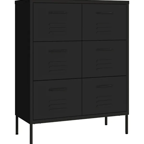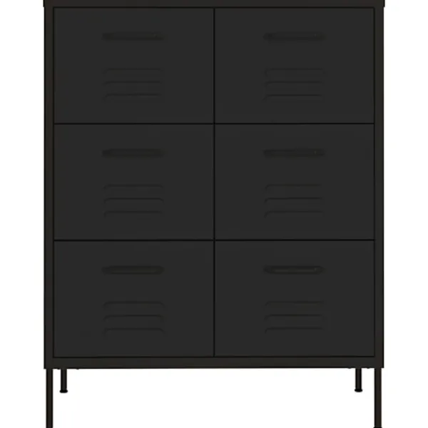 Denna byrå kommer hålla ditt hem rent och organiserat! Förvaringsskåpet är tillverkat av stål och härdat glas, vilket gör det stabilt och tåligt. Skåpet har 6 lådor, med gott om förvaringsutrymme för att hålla dina DVD-skivor, multimedieapparater, böcker och små väsentliga föremål organiserade och inom räckhåll. Lådorna med 3 sektioner kullager ger smidig öppning och stängning och även om du lastar de tungt kan de dras ut helt. Dessutom är byrån lätt att rengöra med en fuktig trasa.