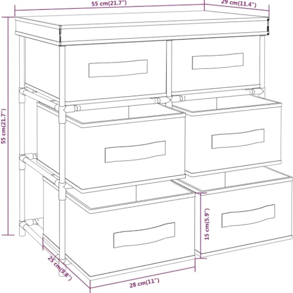 Detta förvaringsskåp med 6 separata lådor ger tillräckligt med utrymme för att lagra dina dagliga nödvändigheter. Tålig och stabil konstruktion: Stålramen säkerställer robusthet och stabilitet. Dessutom är lådorna gjorda av tyg, vilket gör förvaringsenheten lätt och kan enkelt placeras var som helst i ditt hem.Gott om förvaringsutrymme: Lådornas förvaringsutrymme gör att du kan hålla ordning på dina saker.Iögonfallande design: Förvaringsstället är tillverkat av stål och tyg och har en enkel men ändå snygg design.