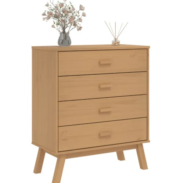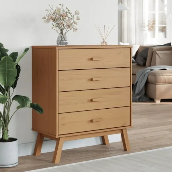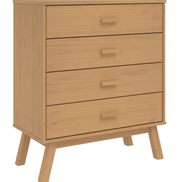 - Massiv furu: Massivt furuträ är ett vackert naturmaterial. Furuträ har raka fibrer, och kvistarna ger materialet en rustik utstrålning. Byrån är tillverkad i massiv furu, därmed är den robust och stabil.