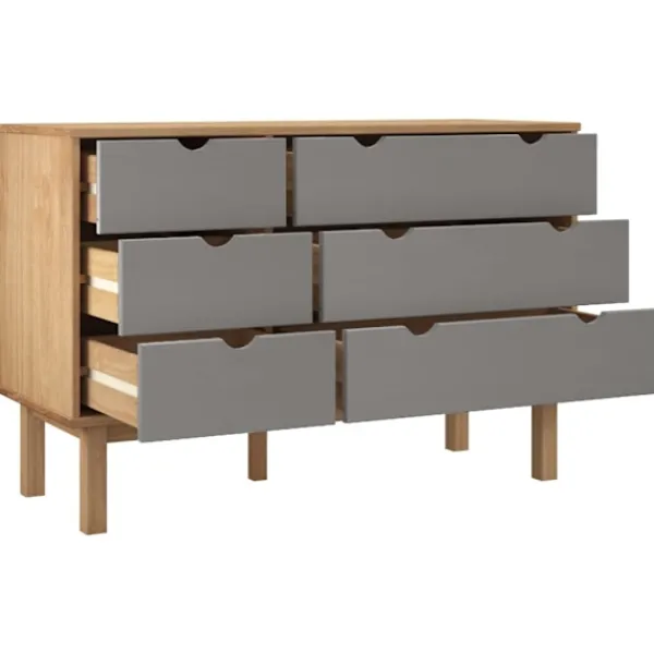 Denna klassiska byrå i trä är ett perfekt val om du vill lägga till en skandinavisk stil till din nuvarande heminredning. Massivt furuträ: Massivt furuträ är ett vackert naturmaterial. Furuträ har raka fibrer, och knutarna ger materialet sin rustika utstrålning.Stabil ram: Träramen säkerställer robusthet och stabilitet.Rymligt förvaringsutrymme: Byrån har 6 lådor. De rymliga lådorna håller dina saker organiserade.Robust ovansida: Dess robusta ovansida är perfekt för att placera krukväxter, inramade foton och andra dekorativa föremål.Flexibel montering: Byrålådorna kan monteras på vänster eller höger sida. Du kan välja olika installationssätt efter dina behov. VARNING:För att förhindra att den välter måste denna produkt användas med den medföljande monteringsanordningen för vägg Observera:Varje produkt levereras med en monteringsmanual i lådan för enkel montering.