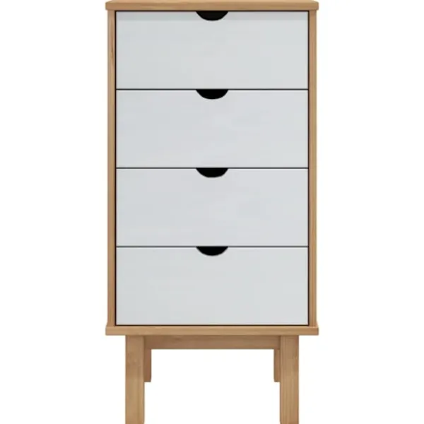 Denna klassiska byrå i trä är ett perfekt val om du vill lägga till en skandinavisk stil till din nuvarande heminredning. Massivt furuträ: Massivt furuträ är ett vackert naturmaterial. Furuträ har raka fibrer, och knutarna ger materialet sin rustika utstrålning.Stabil ram: Träramen säkerställer robusthet och stabilitet.Rymligt förvaringsutrymme: Byrån har fyra lådor. De rymliga lådorna håller dina saker organiserade.Robust ovansida: Dess robusta ovansida är perfekt för att placera krukväxter, inramade foton och andra dekorativa föremål. VARNING:För att förhindra att den välter måste denna produkt användas med den medföljande monteringsanordningen för vägg Observera:Varje produkt levereras med en monteringsmanual i lådan för enkel montering.