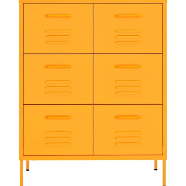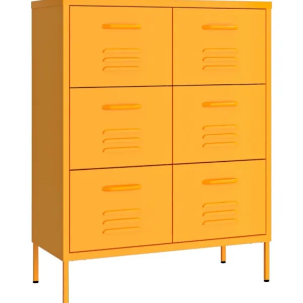 Förvaringsskåpet är tillverkat av stål och härdat glas, vilket gör det stabilt och tåligt. Skåpet har 6 lådor, med gott om förvaringsutrymme för att hålla dina DVD-skivor, multimedieapparater, böcker och små väsentliga föremål organiserade och inom räckhåll. Lådorna med 3 sektioner kullager ger smidig öppning och stängning och även om du lastar de tungt kan de dras ut helt. Dessutom är byrån lätt att rengöra med en fuktig trasa.