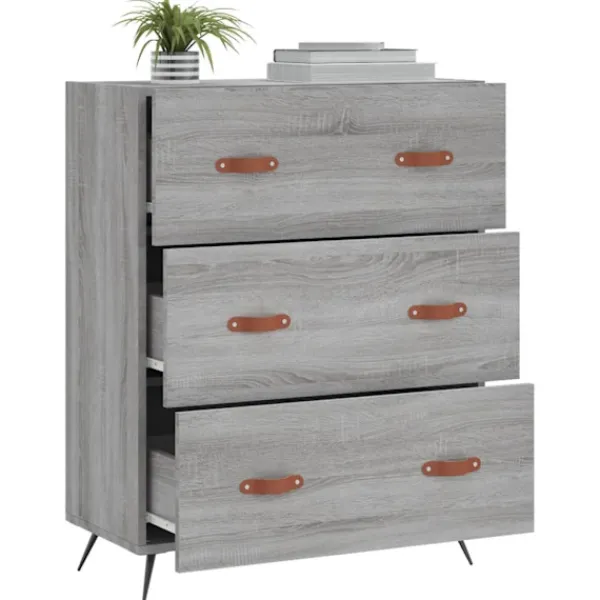 Denna klassiska byrå med ett tidlöst utseende kan bli ett perfekt tillskott i din heminredning. Hållbart material: Det konstruerade träet är av exceptionell kvalitet med slät yta och är också starkt, stabilt och fuktbeständigt. Byrån är tillverkad av konstruerat trä och är lätt att rengöra med en fuktig trasa.Gott om förvaringsutrymme: Byrån har 3 lådor som erbjuder gott om förvaringsutrymme för att hålla dina saker välorganiserade och inom räckhåll.Displayfunktion: Översidan av denna byrå är utmärkt för att visa upp dina dekorativa föremål, fotoalbum eller mindre växter.Metallfötter: Metallfötterna ger din inredning ett lugn stil samtidigt som de säkerställer stabilitet. Varning:För att förhindra att den välter måste denna produkt användas tillsammans med det medföljande väggfästet.