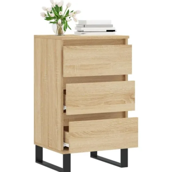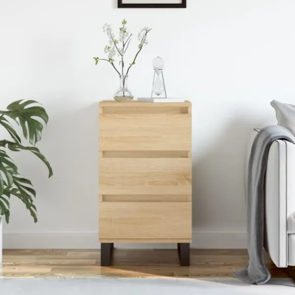 - Hållbart material: Det konstruerade träet är av exceptionell kvalitet med slät yta och är också starkt, stabilt och fuktbeständigt. Skänken är tillverkad av konstruerat trä och är lätt att rengöra med en fuktig trasa.