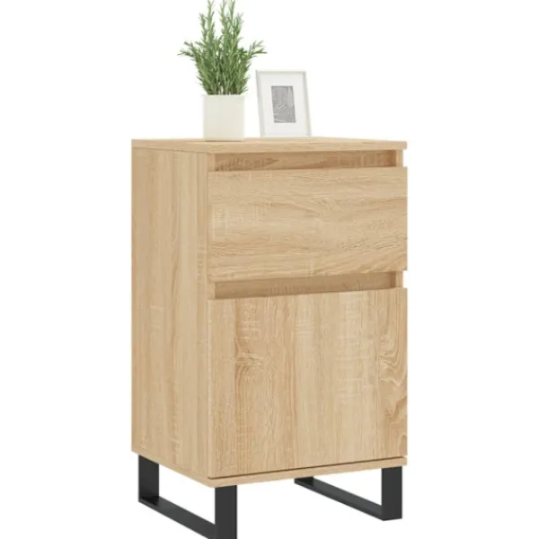 - Hållbart material: Det konstruerade träet är av exceptionell kvalitet med slät yta och är också starkt, stabilt och fuktbeständigt. Skänken är tillverkad av konstruerat trä och är lätt att rengöra med en fuktig trasa.