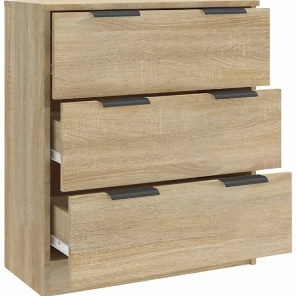 Denna klassiska skänk med ett tidlöst utseende kan bli ett perfekt tillägg till din lounge, matsal, korridor etc. Praktiskt material: Det konstruerade träet är av exceptionell kvalitet med slät yta och har också styrka, stabilitet samt motståndskraft mot fukt.Mer förvaringsutrymme: Byrån har 3 lådor, med gott om utrymme för förvaring av kläder, hattar, böcker, dokument, smycken etc.Visningsfunktion: Översidan av denna byrå är utmärkt för att visa dina dekorativa föremål, fotoalbum eller små växter.Lätt att rengöra: Byrån är lätt att rengöra med en fuktig trasa. Varning:För att förhindra att den välter måste denna produkt användas med den medföljande monteringsanordningen för vägg
