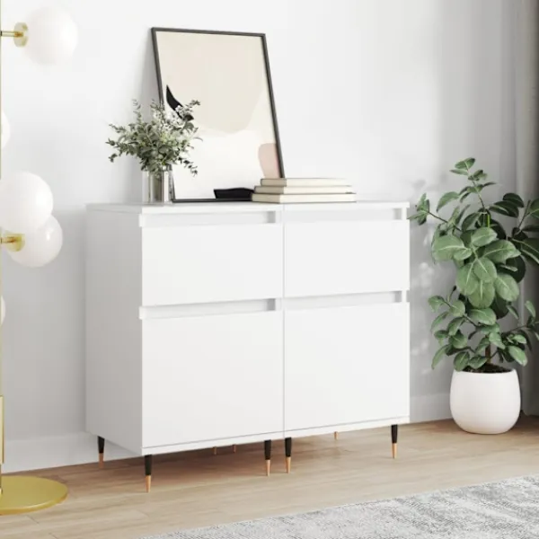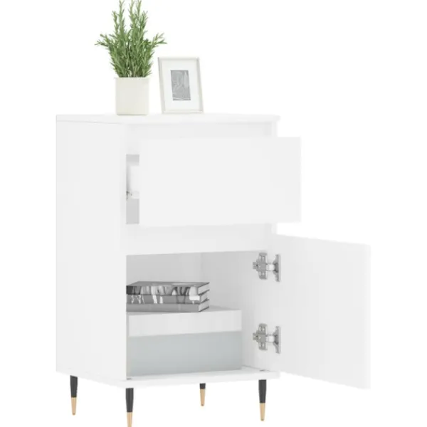 - Hållbart material: Det konstruerade träet är av exceptionell kvalitet med slät yta och är också starkt, stabilt och fuktbeständigt. Skänken är tillverkad av konstruerat trä och är lätt att rengöra med en fuktig trasa.