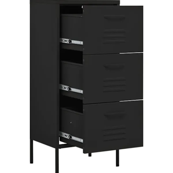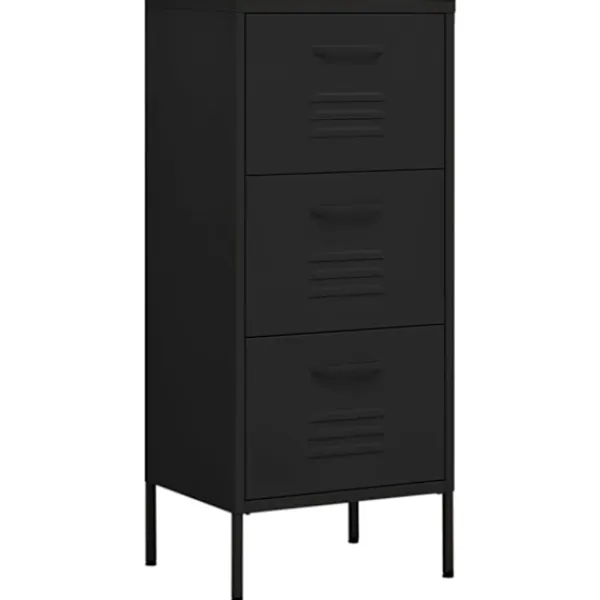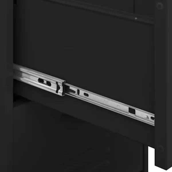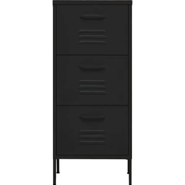 Detta förvaringsskåp med en praktisk design blir garanterat ett blickfång i ditt hem. Detta sidoskåp, med stålkonstruktion, är robust och hållbart. Det finns utjämnare på botten för att justera höjden enligt dina behov. Lådorna kan dras ut helt och är perfekta för att hålla alla typer av mindre föremål organiserade och inom räckhåll. Lådor med kullager bidrar till en smidig öppning och stängning, även under ökad belastning.