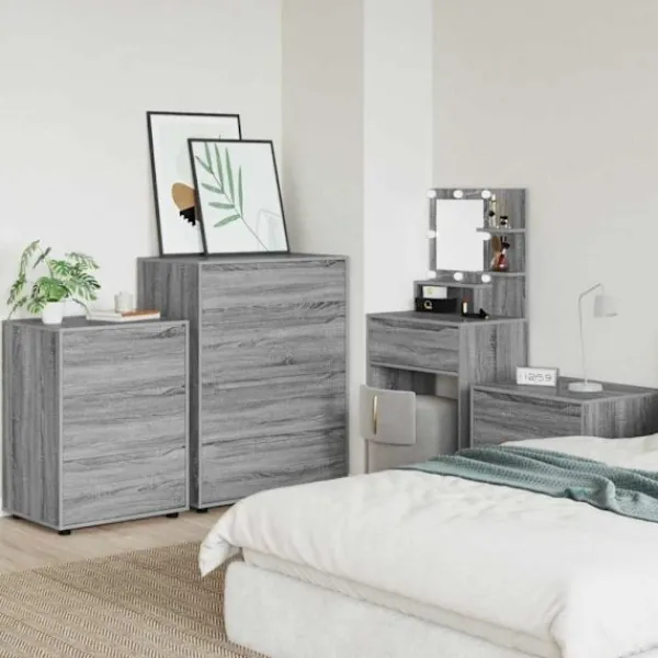 - Premium konstruerat trä: Skåpet är gjort av högkvalitativt konstruerat trä med en slät och hållbar yta som håller över tid. Det klarar av vardagligt slitage och blir ett bra val för förvaring.