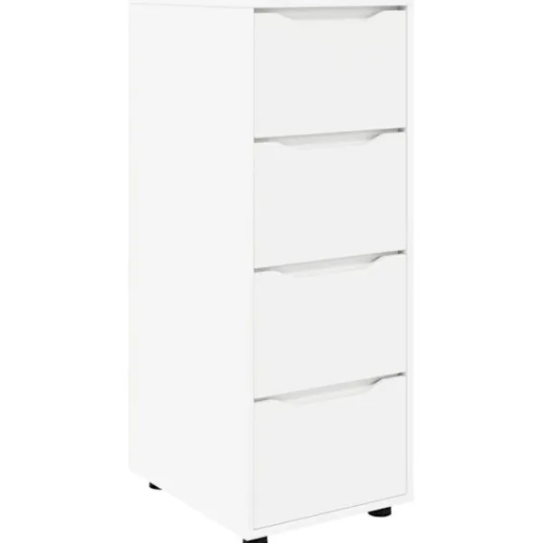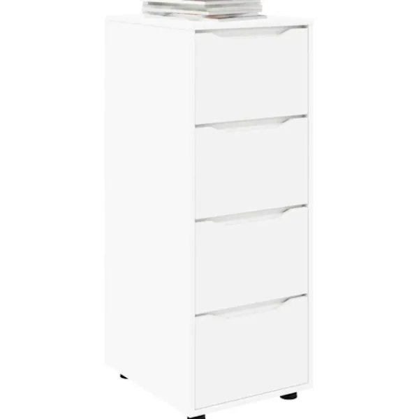 Det här förvaringsskåpet har en snygg design som blandar minimalistisk stil med smart funktionalitet. Det passar bra i både sovrum och vardagsrum, och dess slanka, rektangulära form i hållbart konstruerat trä har en yta som ser bra ut i något modernt hem. Den diskreta designen går i linje med en minimalistisk stil och ger gott om förvaringsutrymme med flera lådor, som passar alla som uppskattar både stil och funktion.