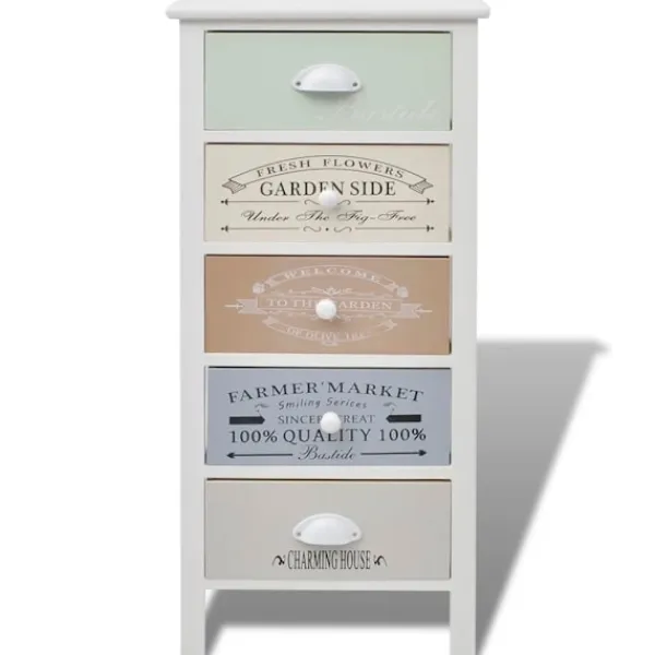 - Med 5 lådor i olika färger