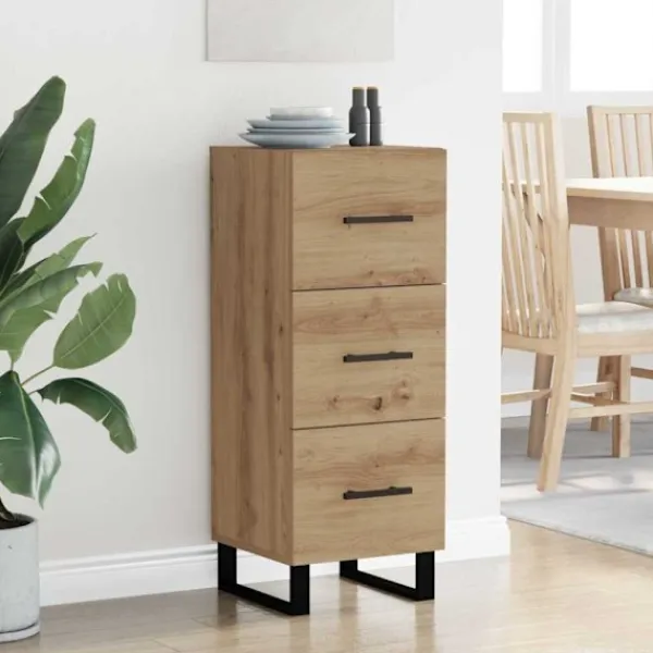 - Byggd av konstruerat trä: Skåpet är helt tillverkat av konstruerat trä, som är känt för sin släta yta och hållbarhet. Det valda materialet ger en stadig konstruktion som tål vardagligt slitage och ser bra ut i olika inredningsstilar.