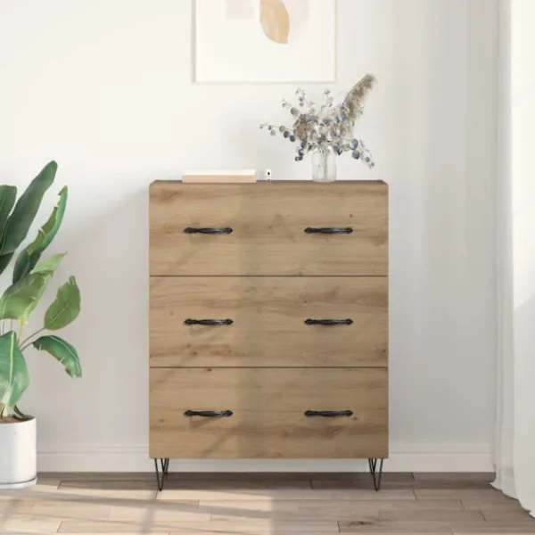 - Rustik estetik: Den rustika designen har järnfötter och matta handtag som framhäver hantverket och ger en naturlig känsla. Den passar utmärkt in i lantliga hem och skapar en varm atmosfär.
