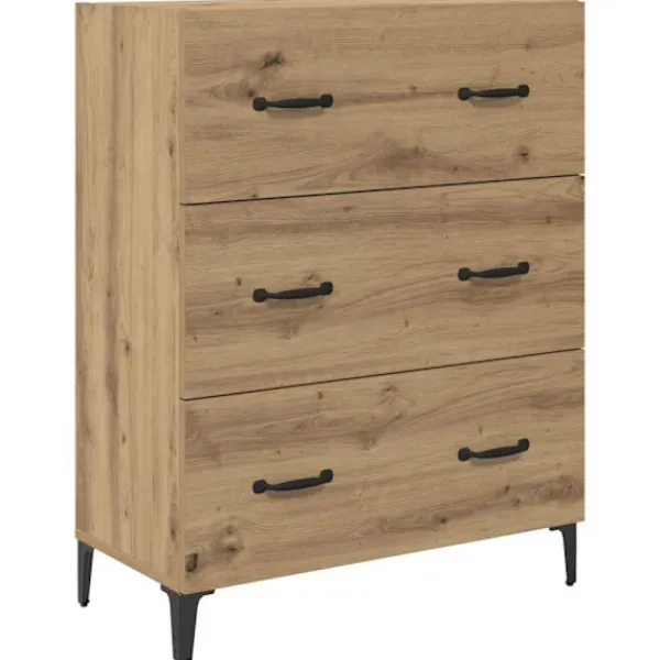 Detta sidobord är både snyggt och praktiskt, tillverkat av konstruerat trä och järn. Dess rektangulära form och svarta ben ger en stabil bas som passar perfekt för förvaring, oavsett om det är i matsalen, vardagsrummet eller någon annan plats som behöver ordning. Med sin eleganta design ligger fokus på både stil och funktionalitet, vilket gör det till en perfekt lösning för alla som uppskattar både vanliga och snygga möbler. Oavsett om du vill förvara middagsserviser, linne eller andra saker, så funkar det här bordet utmärkt.