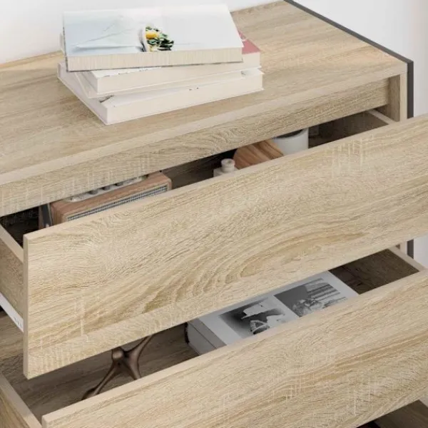 Detta coola sidobord kombinerar industriell charm med mycket funktionalitet och är en riktigt cool möbel för vardagsrummet. Det har en stadig ram av konstruerat trä och snygga stålben som ger både stil och stabilitet. Det passar perfekt i moderna, rustika eller minimalistiska miljöer, och ger både ett snyggt utseende och praktisk förvaring.