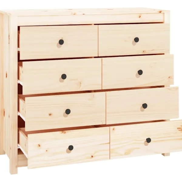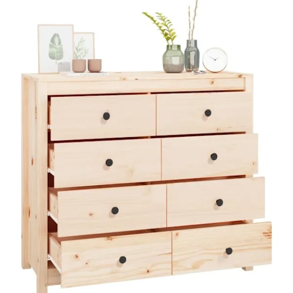 Denna praktiska skänk uppfyller dina olika krav och blir ett perfekt tillskott i ditt rum. Massivt furuträ: Detta skåp är tillverkat av massivt furuträ. Massivt furu är ett vackert naturmaterial. Furuträ har raka fibrer, och knutarna ger materialet sin signatur, rustikt utseende.Gott om förvaringsutrymme: Skåpet är utrustat med rymliga lådor och erbjuder gott om förvaringsutrymme för att hålla dina olika dagliga saker välorganiserade och inom räckhåll.Robust ovansida: Du kan också placera dina favoritfoton, dekorationer eller blommor ovanpå skåpet för att berika ditt rum. Varning:För att förhindra att den välter måste denna produkt användas med den medföljande monteringsanordningen för vägg Observera:Varje produkt levereras med en monteringsmanual i lådan för enkel montering.