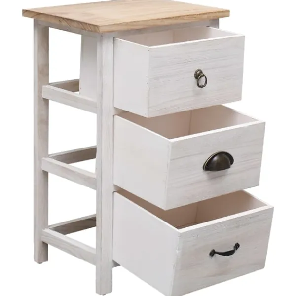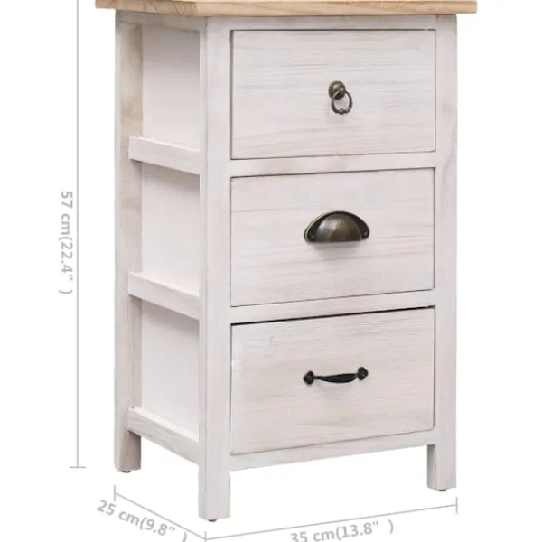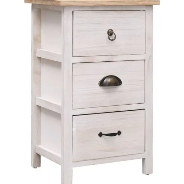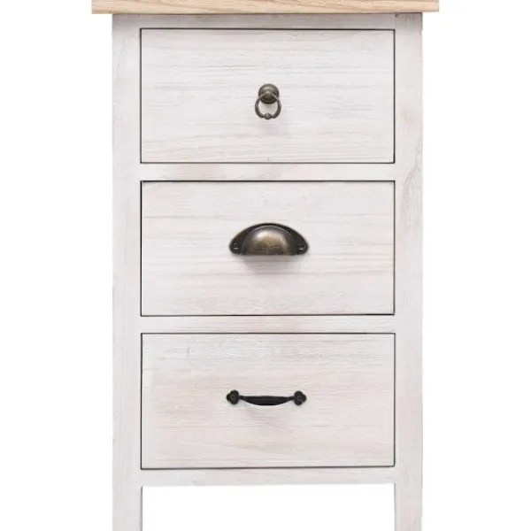 Vårt sidobord i trä blir ett praktiskt och dekorativt tillskott i din inredning. Det kan även användas som telefonbord, sängbord, med mera. Denna byrå är tillverkad av paulownia och är ytterst hållbar och stadig. Den erbjuder gott om förvaringsutrymme med 3 lådor. Dess stadiga bordsskiva är dessutom perfekt för uppvisning av dekorativa föremål, fotoramar eller krukväxter. Den kan enkelt torkas av med en fuktig trasa. Sidoskåpet är enkelt att montera.
