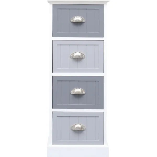 Vårt sidobord i trä blir ett praktiskt och dekorativt tillskott i din inredning. Det kan även användas som telefonbord, sängbord, med mera. Denna byrå är tillverkad av kejsarträ och MDF och är ytterst hållbar och stadig. Den erbjuder gott om förvaringsutrymme med 4 lådor. Dess stadiga bordsskiva är dessutom perfekt för uppvisning av dekorativa föremål, fotoramar eller krukväxter. Den kan enkelt torkas av med en fuktig trasa. Sidoskåpet är enkelt att montera.