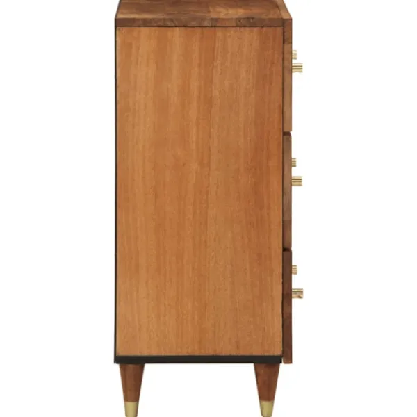 - Massivt mangoträ: Massivt mangoträ är ett starkt, tropiskt träslag som blir robusta möbler. Dess vackra träådringar gör varje möbel något unik. Skåpet är tillverkat av massivt mangoträ och är hållbart och stabilt.