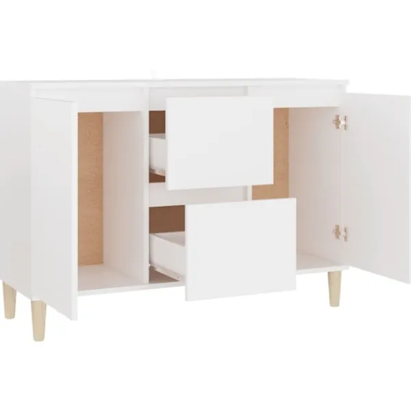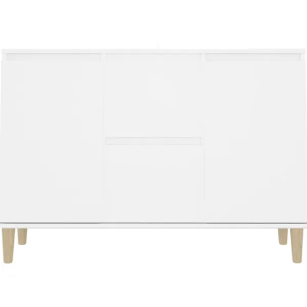 Denna skänk med minimalistisk design blir ett såväl praktiskt som högst dekorativt tillskott i ditt hem. Robust material: Det konstruerade träet är av exceptionell kvalitet med slät yta och är också starkt, stabilt och fuktbeständigt.Gott om förvaring: Förvaringsskåpet har 2 lådor och 2 dörrar och gott om förvaringsutrymme för att hålla dina saker välorganiserade och inom räckhåll.Visningsfunktion: Den robusta bordsskivan är perfekt för att visa upp dekorationer, inramade foton eller krukväxter.Praktiska dörrar: Håll dina väsentligheter fria från damm genom att förvara dem i denna skänk.