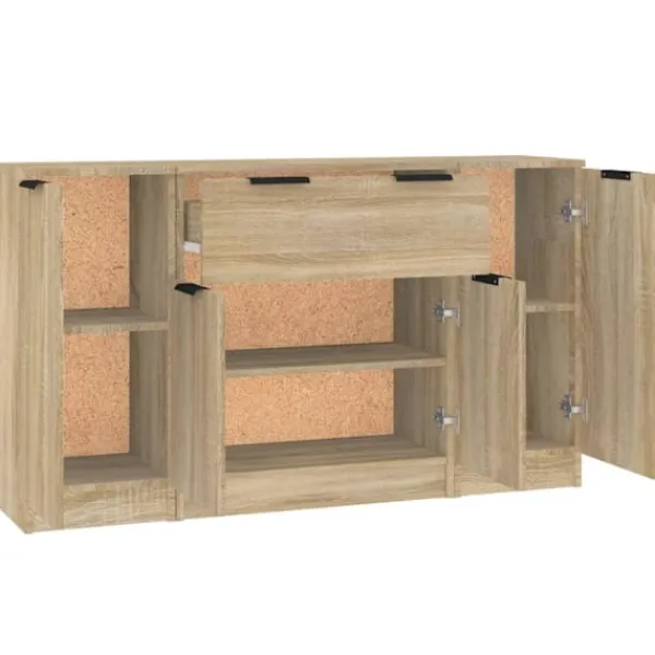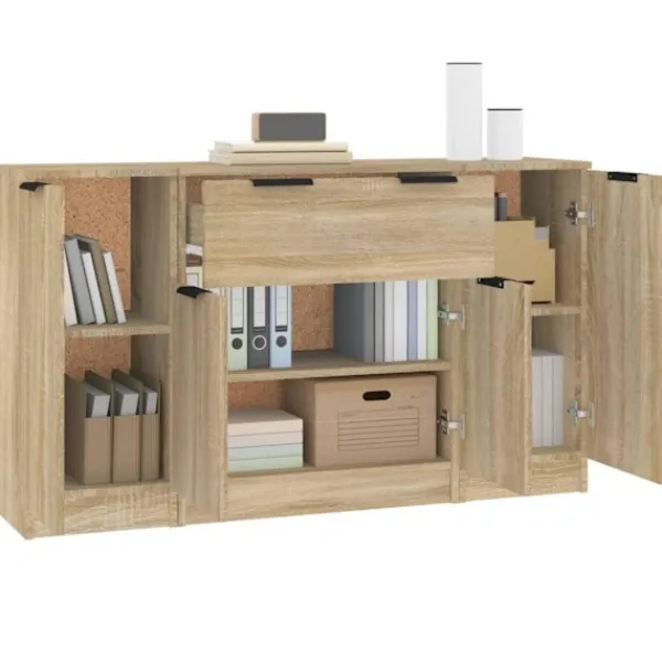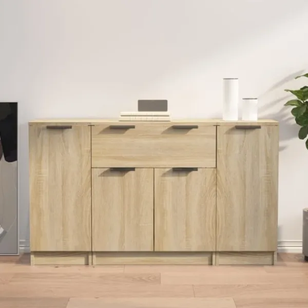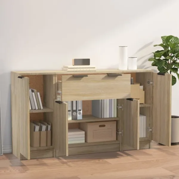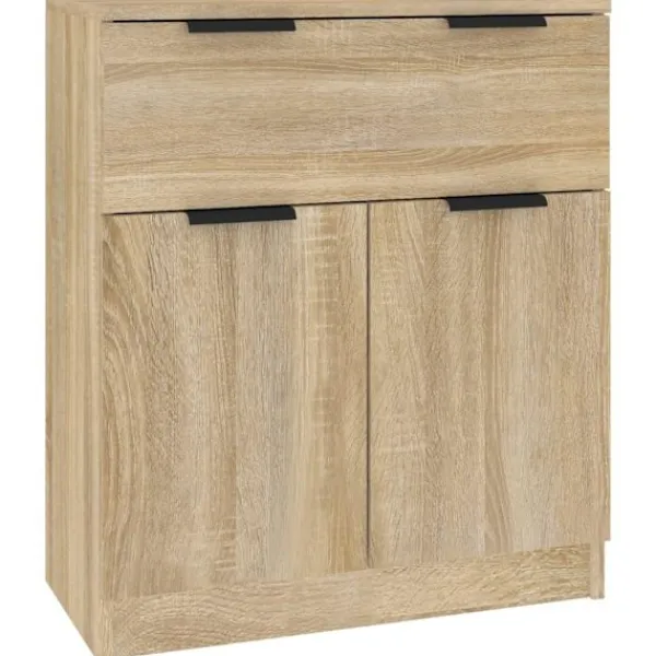 Denna skänk med minimalistisk charm kommer att uppfylla dina olika behov och är perfekt att ha i alla sorters rum. Lättskött material: Skänken är tillverkad av konstruerat trä som är lätt att rengöra. Det konstruerade träet är av exceptionell kvalitet med slät yta och är också starkt, stabilt och fuktbeständigt.Gott om förvaringsutrymme: Med 6 fack och 1 låda har skåpet gott om förvaringsutrymme för att hålla dina böcker, multimediaapparater och andra föremål välorganiserade och inom räckhåll.Trendig design: De eleganta skänkarna har rena linjer och ett minimalistiskt utseende som utstrålar en modern känsla i din befintliga inredning. Observera:Varje produkt levereras med en monteringsmanual i lådan för enkel montering. Varning:För att förhindra att den välter måste denna produkt användas med den medföljande monteringsanordningen för vägg