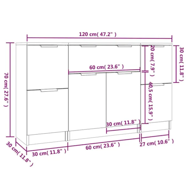 - Mått (skänk med låda): 60 x 30 x 70 cm (B x D x H)