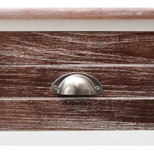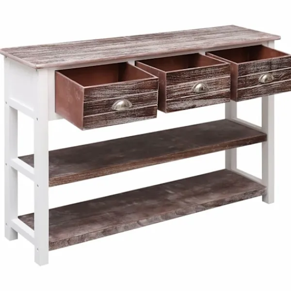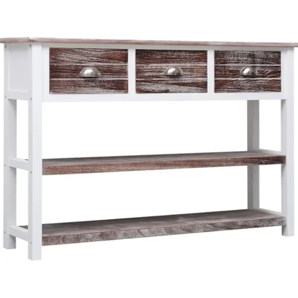 Skänken i trä blir ett tidlöst tillägg i din inredning. Denna skänk är tillverkad av premium poppel och paulownia och är högst stabil och hållbar. Dess stadiga ovansida är en optimal plats att ställa dekorativa föremål som vaser eller krukväxter. Dess 3 lådor och 2 hyllor har gott om plats för att hålla dina olika saker organiserade. Den kan även användas som ett praktiskt avlastningsbord. Skåpet är enkelt att montera. OBS: För att förhindra att den välter måste denna produkt användas med det medföljande väggfästet.