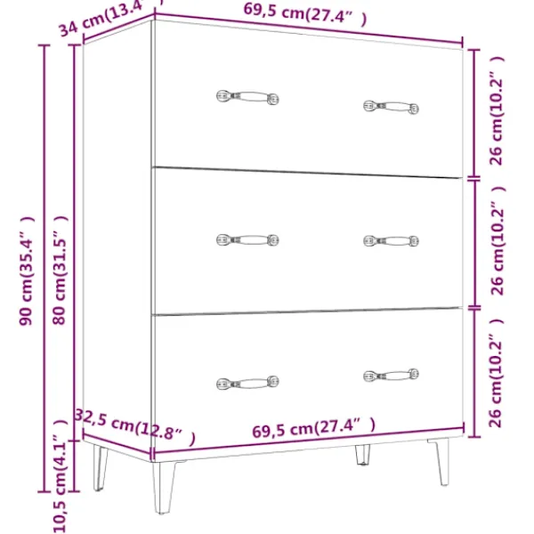 Denna klassiska skänk kommer att bli ett praktiskt tillskott till ditt hem. Praktiskt material: Det konstruerade träet är av exceptionell kvalitet med slät yta och har också styrka, stabilitet samt fuktbeständighet.Gott om förvaring: Skänken har 3 lådor, med gott om förvaringsutrymme för att hålla dina olika saker välorganiserade och inom räckhåll. Ovansidan av skänken är perfekt för att ställa dina prydnadssaker på.Lätt att rengöra: Bokskåpet är lätt att rengöra med en fuktig trasa.Snygg design: Denna skänk har en elegant design, som kommer att tillföra en unik charm till din nuvarande inredning! Varning:För att förhindra att den välter måste denna produkt användas med den medföljande monteringsanordningen för vägg