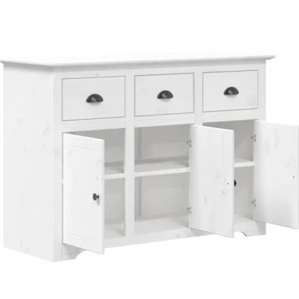 Denna klassiska skänk, med en fransk design, kommer att uppfylla dina krav och blir ett utmärkt komplement till ditt rum. Massivt furuträ: Massivt furuträ är ett vackert naturmaterial. Furuträ har raka fibrer, och knutarna ger materialet sin rustika utstrålning.Gott om förvaringsutrymme: Skåpet har 3 lådor och fack bakom dörrar för att hålla dina olika dagliga väsentligheter välorganiserade och inom räckhåll.Placeringsfunktion: Du kan också placera dina favoritfoton, dekorationer eller blommor på skåpets ovansida för att sätta extra prägel på din inredning.Metallhandtag: Skänkens metallhandtag gör det bekvämt att öppna och stänga lådorna och dörrarna.De gör också skänken mer attraktiv.Charmig fransk stil: Lägg till en inspirerande fransk stil till din inredning! Varning:För att förhindra att den välter måste denna produkt användas tillsammans med det medföljande väggfästet.