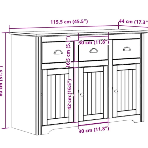 - Mått: 115,5 x 44 x 80 cm (B x D x H)