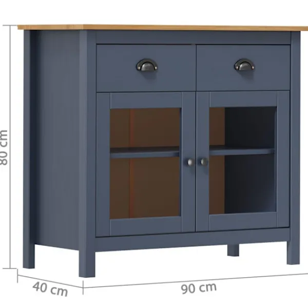 Håll allt organiserat i din inredning med vår eleganta skänk. Skänken är tillverkad i massiv furu som gör den stabil och stadig. Tack vare 2 hyllor och 2 rymliga lådor med skålhandtag erbjuder den gott om förvaringsplats för att hålla dina olika föremål i perfekt ordning och inom räckhåll.