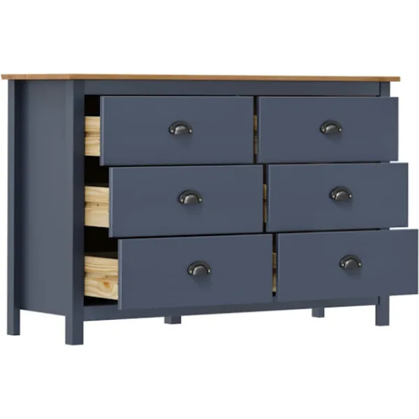 Denna skänk är tillverkad i massiv furu och är mycket stadig. Den har 6 lådor som är enkla att öppna, vilket ger dig gott om plats att hålla saker inom räckhåll. Den stora ovansidan kan användas för att visa upp en fruktskål eller dekorativa saker som fotoramar eller krukväxter.