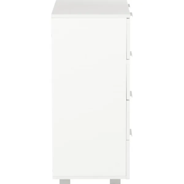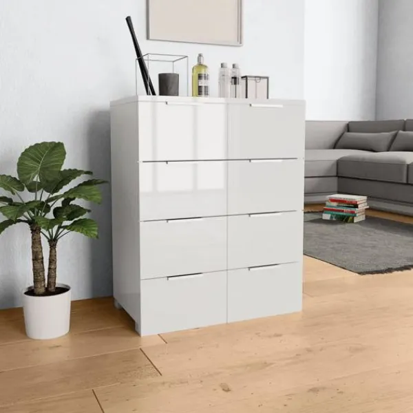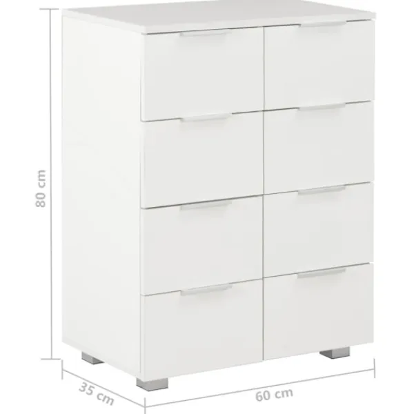 Med sitt praktiska förvaringsutrymme blir skänken ett perfekt komplement i alla rum. Eftersom den är tillverkad i spånskiva med en högglansig finish är byrån vacker och oerhört stadig och stabil. Dessutom är den utrustad med 8 lådor och har gott om plats för dina olika prylar, så du kan hålla ditt rum städat. Detta förvaringsskåp i högglans är enkelt att rengöra.