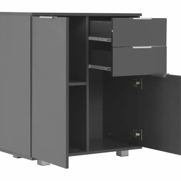 Med sitt praktiska förvaringsutrymme blir skänken ett perfekt komplement i alla rum. Eftersom den är tillverkad i spånskiva med en högglansig finish är byrån vacker och oerhört stadig och stabil. Dessutom är den utrustad med 2 lådor och har gott om plats för dina olika prylar, så att du kan hålla ditt rum städat. Detta förvaringsskåp i högglans är enkelt att rengöra.